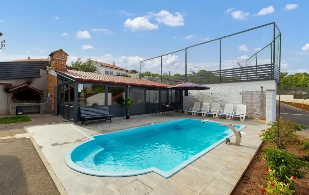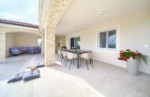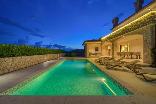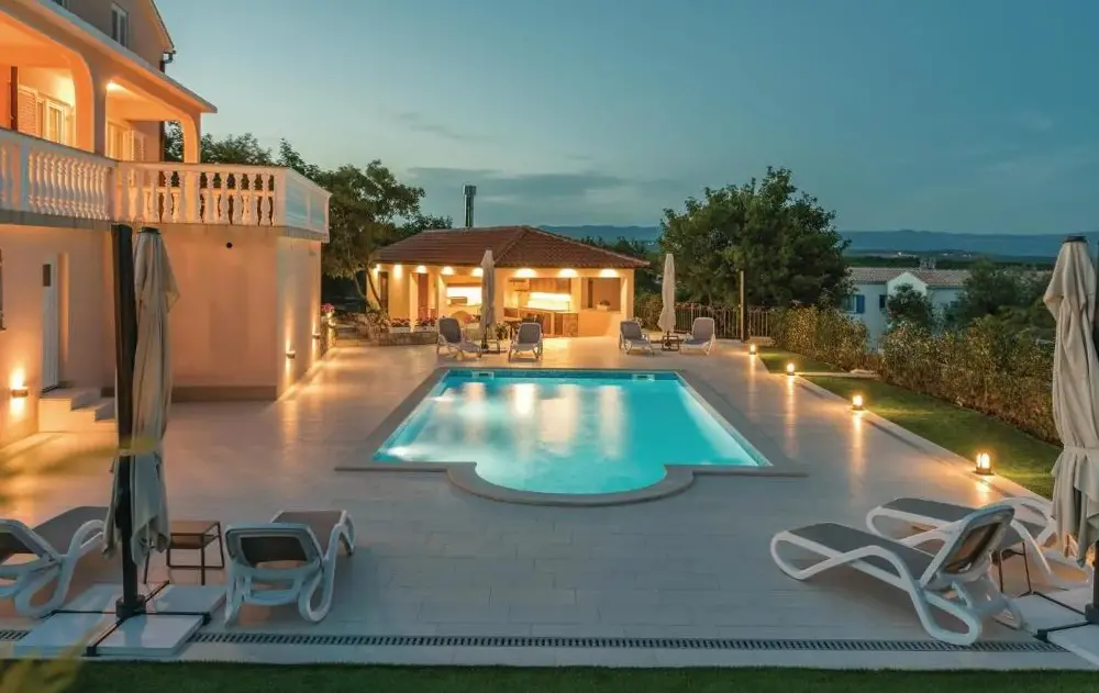 Więcej informacji o Holiday House KrkVilla & Jardin oferuje luksusową willę z prywatnym basenem na świeżym powietrzu, idealną dla gości poszukujących wygody i relaksu w otoczeniu natury. Goście mogą korzystać z bezpłatnego parkingu oraz transferów na lotnisko, co ułatwia podróżowanie po wyspie Krk.