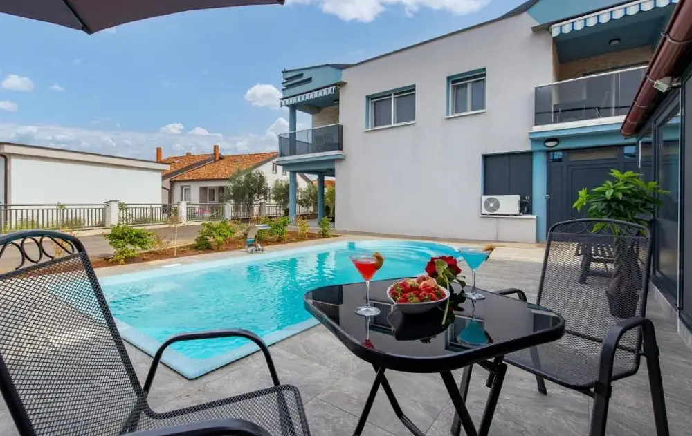 Więcej informacji o Apartman PetraVilla Laura w Brusićach 7 oferuje przestronne pokoje rodzinne idealne dla rodzin i grup przyjaciół, zapewniając wygodę dzięki dostępnym miejscami parkingowym bez opłat oraz szybkim połączeniem z lotniskiem przez organizowany transfer. Goście mogą korzystać z basenu na świeżym powietrzu, co stanowi doskonałą przestrzeń relaksu po aktywnych dniach spędzonych w okolicy.